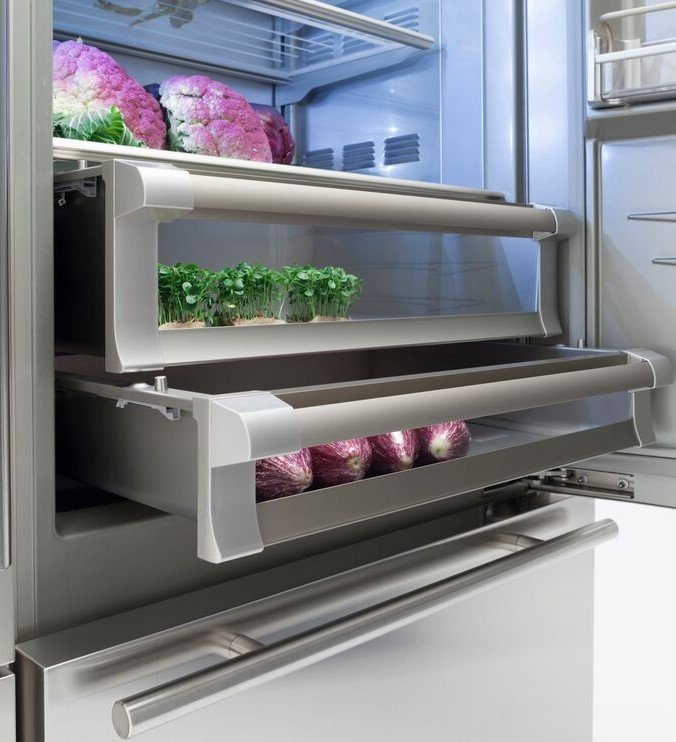FRigo da 90 cm. Portellone superiore e cassettone posteriore. cassettone congelatore. Tutte le superfici che vengono a contatto diretto conn gli alimenti sono realizzate inn acciaio inox micropallinato . Il trattamento di micropallinatura consente di ottenere superfici omogenee e rifiniture estetiche di ALTISSIMA QUALITA'. Serie CLASSIC